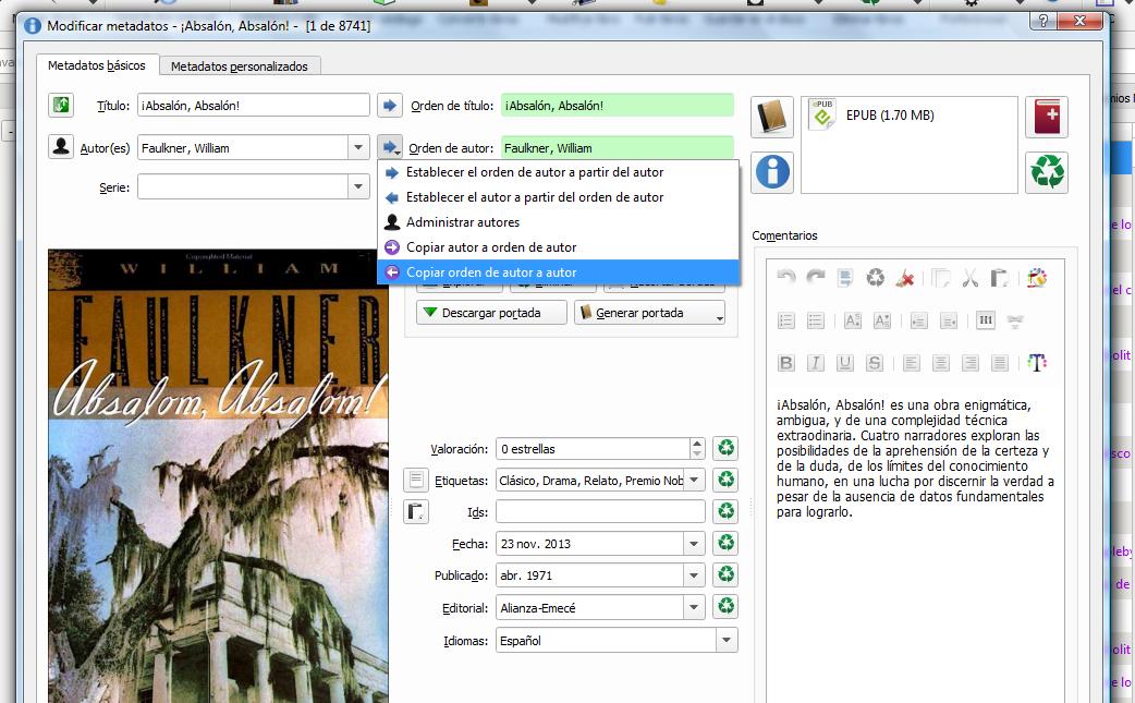Now, because I have a spanish version, let me ask you something: where is the author drop-down option you said? I proceed as you see because some times I add many books by many authors, so, it's the easy way for me. Thanks for answer!!!! |