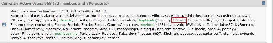 But where are these so-called 'Currently Active Users' lists'. Seems to me they themselves are invisible. All I see is a user count. Curiosity satisfied. I'll stop worrying about it. Maybe First Dog on The Moon has something new for me to worry about. BR Last edited by BetterRed; 01-20-2016 at 07:45 AM. |