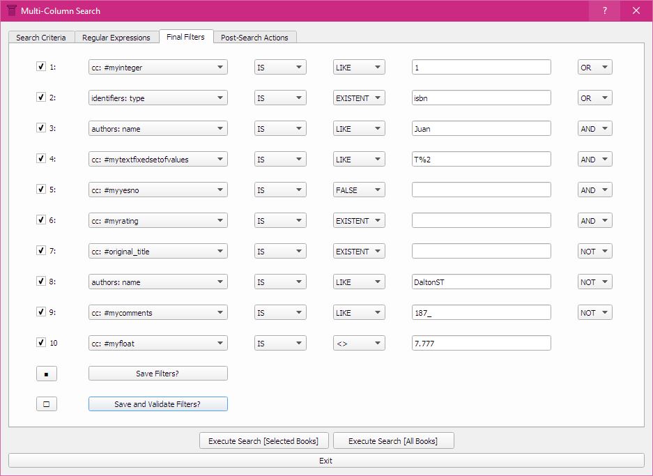 Version 1.0.34 - 11 January 2016 New Search Option: 'Final Filters'. This will apply a maximum of 10 additional filters at the very end to all books that would otherwise have been displayed.