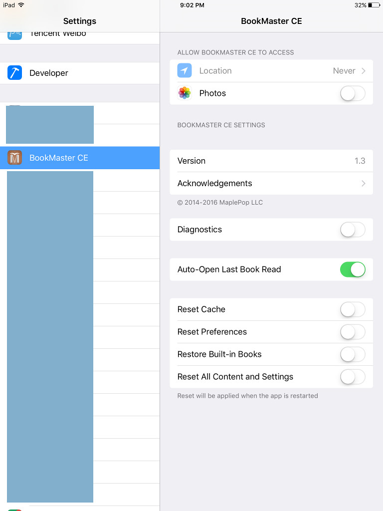 Can that be disabled?I've only been using the app for a little while so may have missed some features but here are a few things I've noticed that I'd like to see changed. Overall though, very nice app. 1) After downloading using OPDS, there's no confirmation. Has caused me to press the download button more than once. 2) There does not appear to be a way to adjust the margins. 3) I prefer the way Brightness works in Marvin where it actually affects the iPad brightness. I'm sure others prefer it the way it is. No big deal. 4) After exiting the app while reading, then going back in later, I end up on the library page, not in the book. This is extremely annoying. I have to find and then select the book I was reading. 5) The data at the edges, title, percent, chapter etc. are a little distracting. Perhaps they could be dimmer? 6) When connecting to an OPDS server (my caliber), I'm always asked to confirm the credentials. I'd rather be connected without the credential dialog if I've saved my creds. Thanks for your consideration Quote: