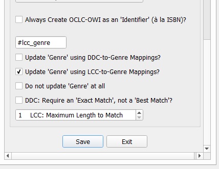 Version 1.0.20 - 2016-03-21 New: Updating of #genre (or any other text custom column) by mapping the DDC or LCC to Table _lc_genre_mapping, which is automatically seeded with over 2,470 DDC-to-genre rows.