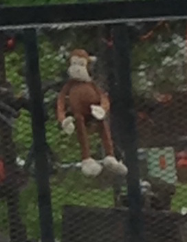 Monkey -- Do you have a cousin out here in my area??? This guy was hanging on the back of a lawn care truck I passed this morning! He indicated that he knew you. I had a hard time taking a photo *while* I was driving, but he refused to stop for me.