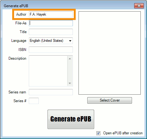 Steps to Reproduce In the "Generate ePUB" dialog box, type "F.A. Hayek" into the Author field. click into another box. File-As automatically shows "Hayek, F.a.": If you type "F. A. Hayek" into the Author field, the File-As turns out as intended ("Hayek, F. A."). Expected Functionality Author: "F.A. Hayek" -> File-As: "Hayek, F.A." |