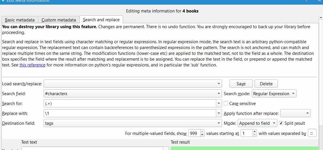 If I add some names in column #characters and next use "Update Calibre Metadata from Web Site" my entry disappears and only the downloaded names from the Website remain.