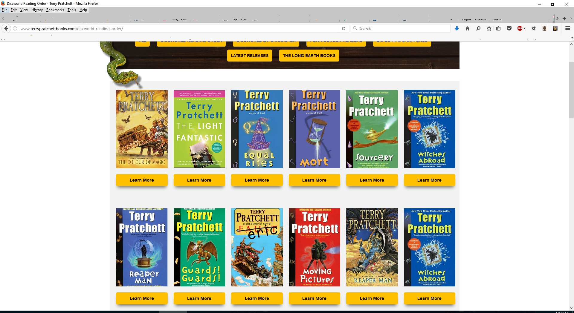 You said yours was official. I said mine was official. And now you're saying that the publisher doesn't know what's official, only Terry should have any say in the reading order of his books. I'm happy to agree. As I've mentioned before, Terry did have something to say about the reading order, as part of a speech he gave at the 2004 WorldCon: "My first novel was published by the first publisher I sent it to. And so I've been learning as I go, and I find it now rather embarrassing that people beginning the Discworld series start with The Colour of Magic and The Light Fantastic, which I don't think are some of the best books to start with. This is the author saying this, folks. Do not start at the beginning with Discworld." Let me repeat that last bit for and with emphasis: "This is the author saying this, folks. Do not start at the beginning with Discworld." There. The official word on Discworld reading order, from the author's mouth. Last edited by pdurrant; 07-26-2016 at 10:07 AM. |
