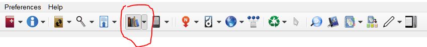 From your screen shot, I don't think they are the same button. That icon is used for three different buttons. One is "Choose Library" which is used to create or change the current library. The tooltip for this will show the library name and number of books. Clicking it should prompt to create a library. This should have the bigger arrow. The second is the "Copy to library". You can put this on the toolbar, but it only shows if you have more than one library. This doesn't have an action for clicking the button, so it should have the smaller arrow. The third is part of the "Location Manager" button. This is only there when the device is connected. It has two or three parts that look like separate buttons, but they are one item in the toolbar. The parts are the library, the device and the secondary storage in the device. Clicking each of these changes the list to that location. Each part has it's own drop down menu, so they should have the menu-type arrow. The screenshot with the device should be the last button. I can't tell which it is for the other screenshot. But, my memory of the library button at home on Win10 is that it has a visible arrow for the menu. |