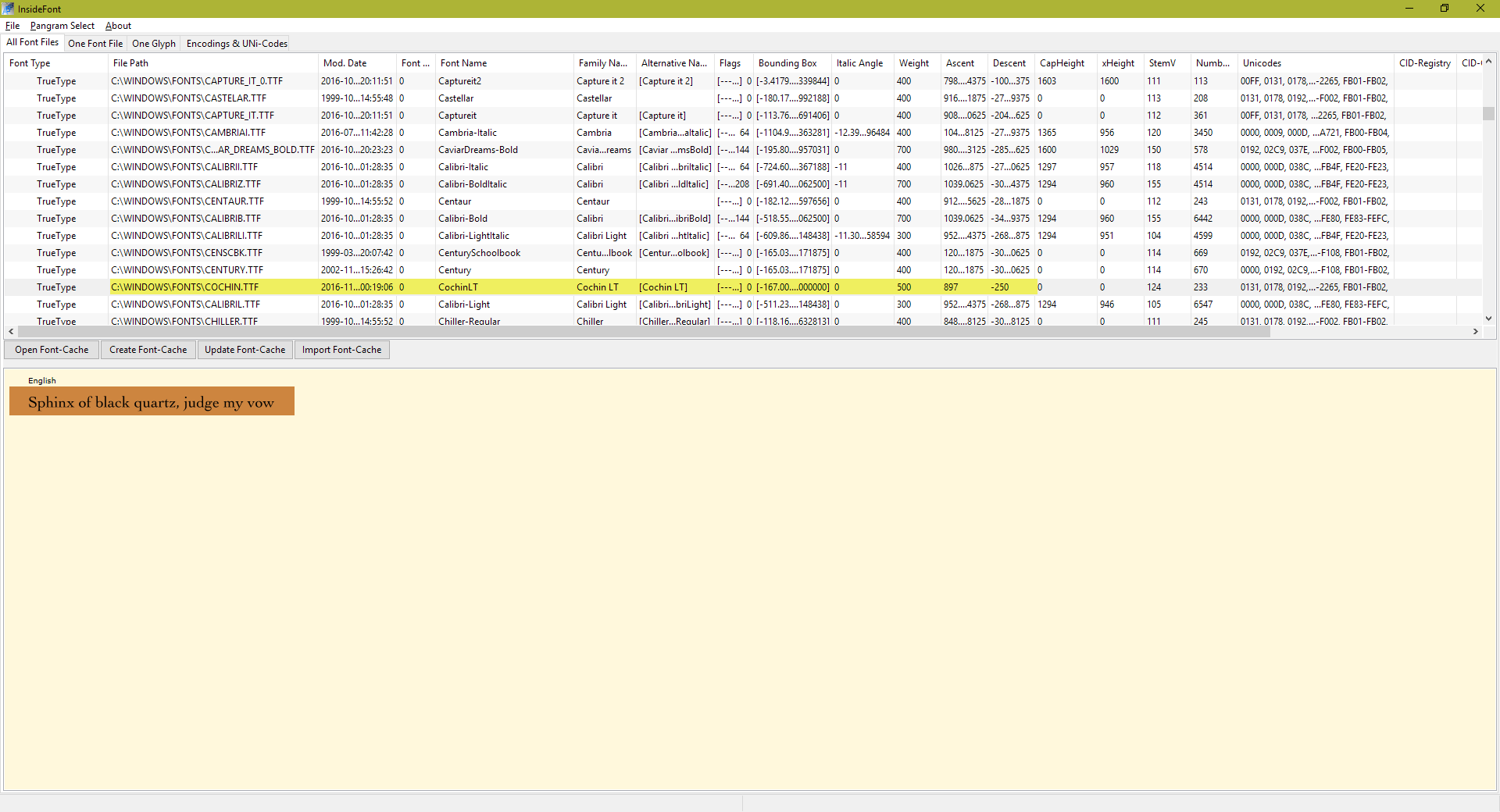 It's a nice tool called Inside Fonts (http://www.insidefont.de/en/index.html).