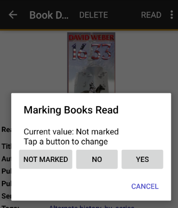 If you tap on the small button next to Read: you see a variant of this dialog. In this case because the current value is None (empty) the dialog lets you set it to Yes or No.