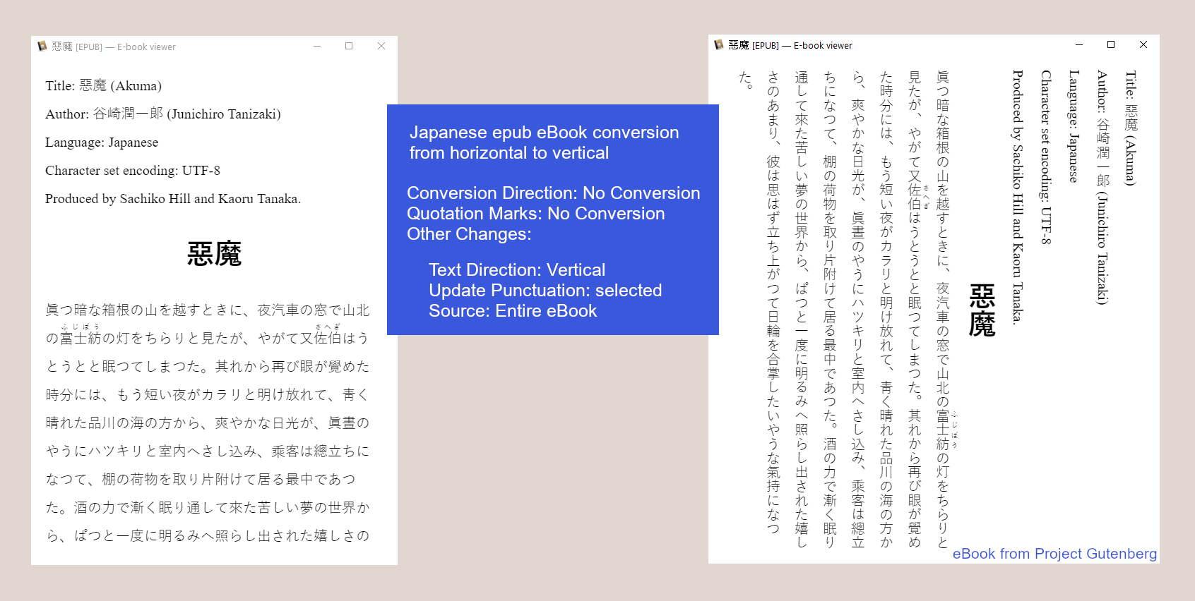 Currently, the Chinese language is written with two different standardized character sets. The Chinese mainland and Singapore officially use the simplified set while other areas (such as Taiwan and Hong Kong) continue to largely use the traditional set. This plugin will allow users to convert EPUB and AZW3 files between both formats.