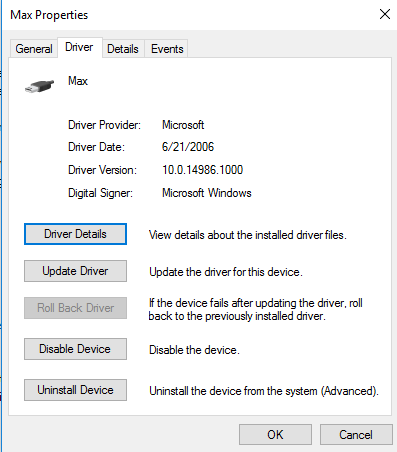On my Win 10 x64 box the Max device showed up automatically. Windows downloaded the driver from Microsoft. I downloaded the android platform tools to confirm adb and it was fine. I even decided to click uninstall driver in the Device Manager, windows asked me for reboot, after reboot the Max device showed up again and it was again working with adb. I have only USB3. I guess that you have jumped to install 3rd party drivers and now you have a conflict. My advise for you is to uninstall any 3rd android USB drivers, go to Device Manager and delete the device (uninstall current driver), after reboot it should be fine as on my box.Here are some details about the driver on my box: It is even visible in the driver history that I uninstalled the driver manually ![]() The Information box contains the text: Quote: