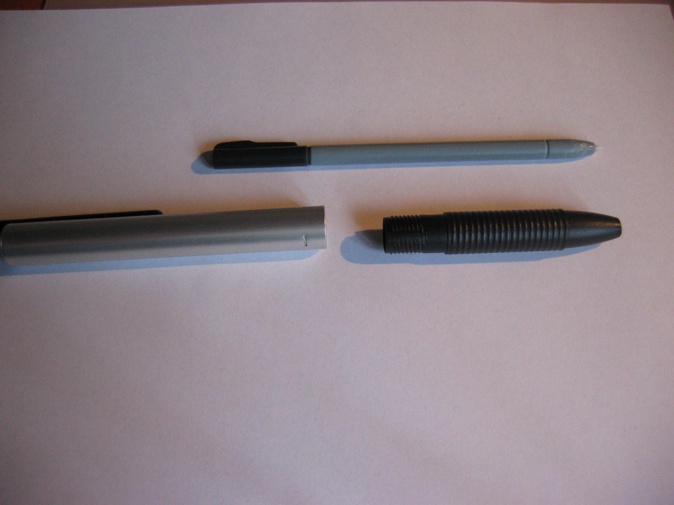 I was recently thinking about buying a bigger stylus for my iLiad v2 to replace the little toothstick. The cheapest one I found was ~30 euros excl. shipment, which is quiet heavy. I was wondering if I could build one for myself using an old pen or something. And as it's exam time here and I had to take my mind off learning...