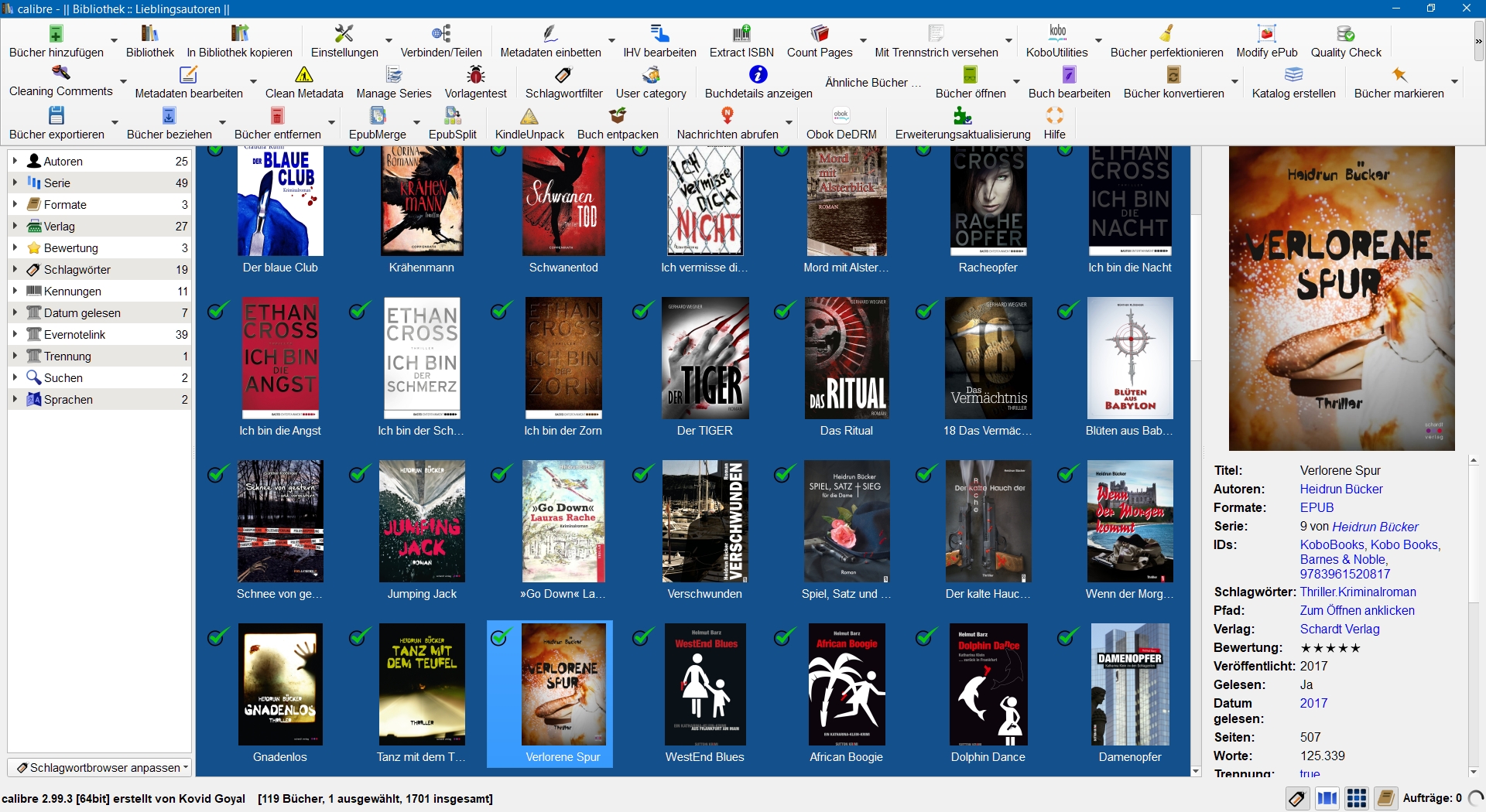 ![]() Until now, everything works fine. I've added books in Caliber, edited with the editor, and copied eBooks to my ›Kobo Aura H2O‹. Everything is OK. I also have no problems with the installed plugins. A conversion from AZW3 to ePUB has also worked perfectly. I don't use the server, because I do not need it so far. My eBook-Reader: ›Kobo Aura H2O‹ with firmware 4.4.9298 My System: Window 10 64bit, version 1703, build 15063.296 Asus P8Z68-V/Gen3 S1155 Z68 ATX Intel Core I5 2500K 4 x 3.30 GHz 16GB Corsair XMS DDR3-1600 DIMM CL9 Quad Kit Zotac NVIDIA GeForce GT 630 ZONE Edition System drive: ADTA SP550 (SSD) Last edited by Martina Schein; 05-12-2017 at 10:31 AM. |