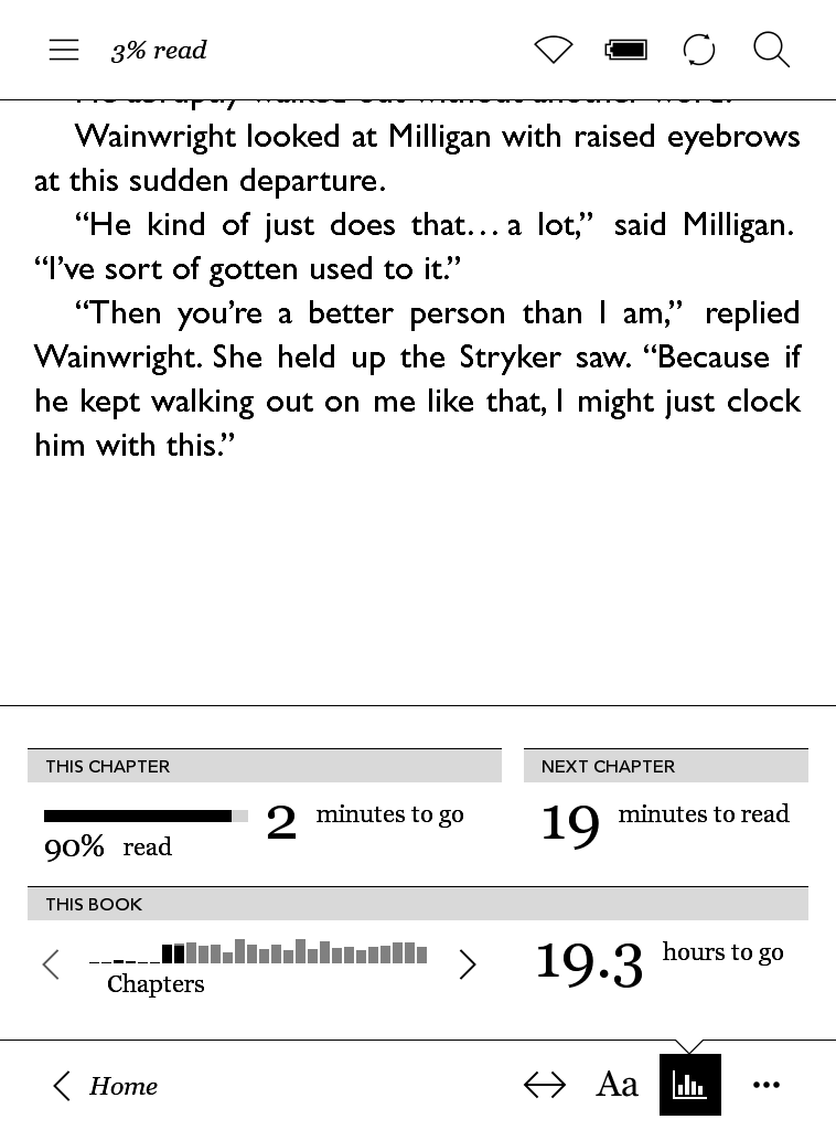 File nickel.patch Version 2.0: bigger chapters height, make sure the last chapter bar is not cut, move the book time to the center. Tested on Kobo Glo, Aura, Aura HD/H2O, Glo HD, Aura ONE. Thanks to jackie_w for testing this patch. Spoiler: