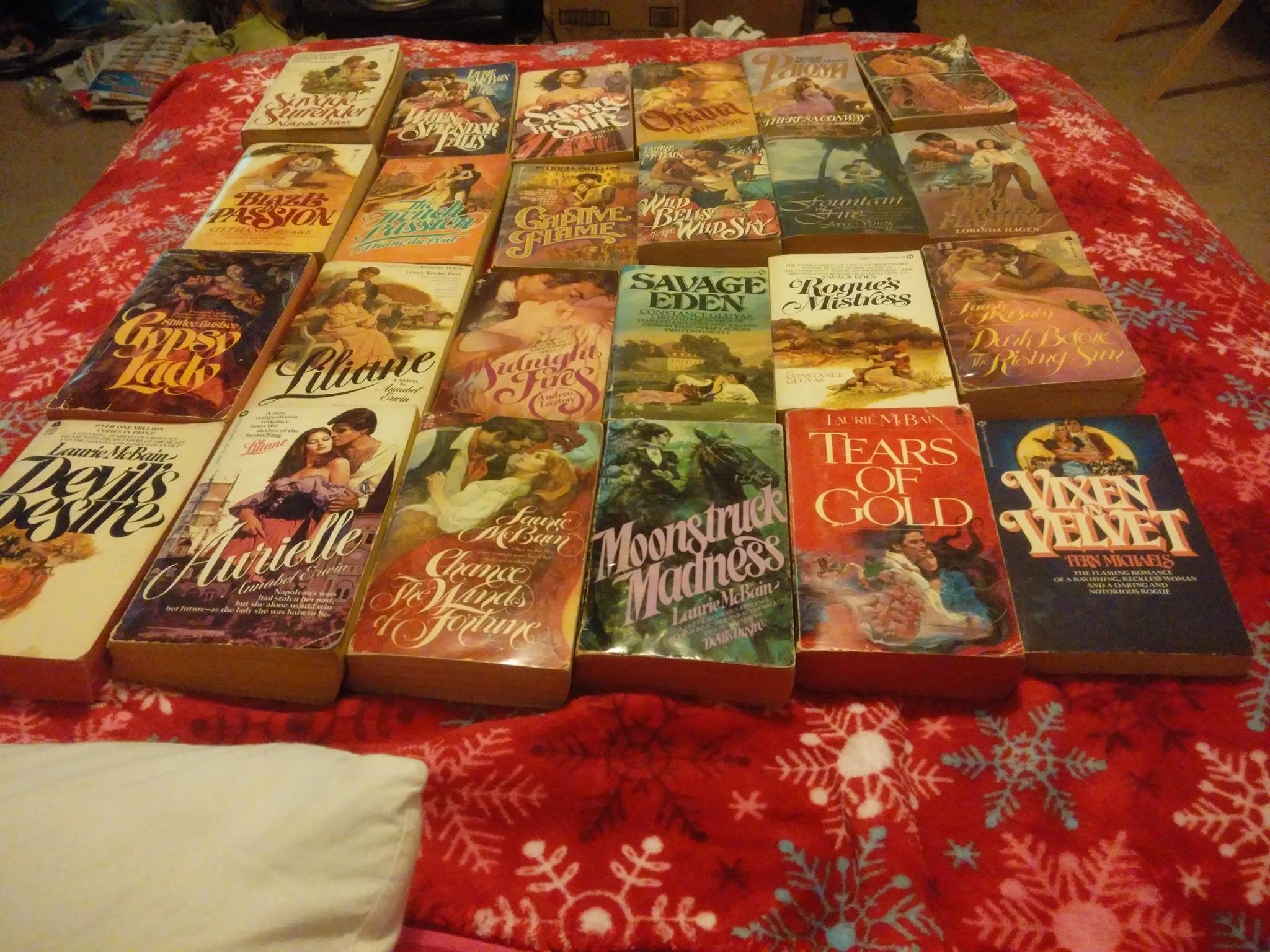 I just had to share with you this amazing book score I got today. These are all bodice rippers pre-fabio covers. All of Laurie McBain books and I got them for practically free. None of these are available in ebook except the Laurie McBain ones.