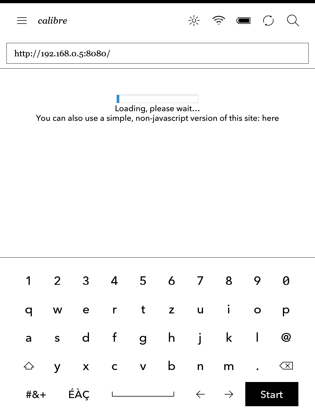 The simple page link is displayed after the call, but after a tip on this link nothing happens. No login is displayed, only a blank white page. The screenshots illustrate this. I think, however, that this is due to Kobo. Even after years the browser still has the beta status. I do not even need this function on my reader, because I copy the eBooks by means of Calibre via USB. Now and then I like to play with my gadgets and try what is possible. I have tested it with Calibre 2.99.9. |
