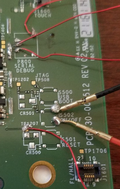 There is another pad that give 1.65v, that I have soldered to, but I don't trust it :-) The power button pad gives proper 1.8, but pulling that down to ground turns the kindle on/off. I think I saw some people use a AA battery for the reference, if I do that, do I just hook Negative to ground, and the positive to the reference voltage on the serial board? Any recommendations are appreciated. Going from top to botom in my image: Code: