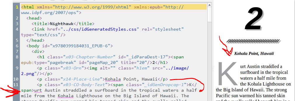 The Last image Shows the Correct Layout in the Calibre eBook Edit Window Viewer Note: Red Lined Circles Showing DropCap View ... ???