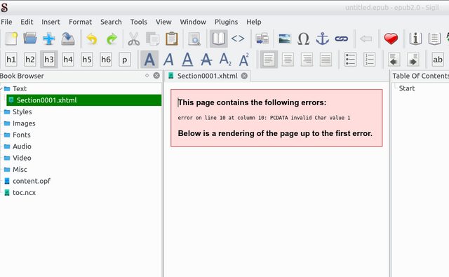 Each time I open Sigil, I got this message. If I open an epub (epub 2) file and want to add a Blank File or Split at Cursor, a similar message appears.