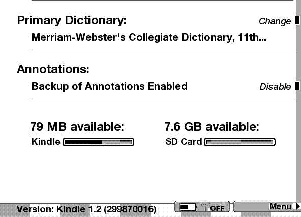 I notice that Amazon is selling Merriam-Webster's Collegiate Dictionary, 11th Edition which is the dictionary I normally use at home in both the dead-tree and computer versions. Apparently, though, if I buy it I can't use it as the default dictionary for the Kindle look up feature.
