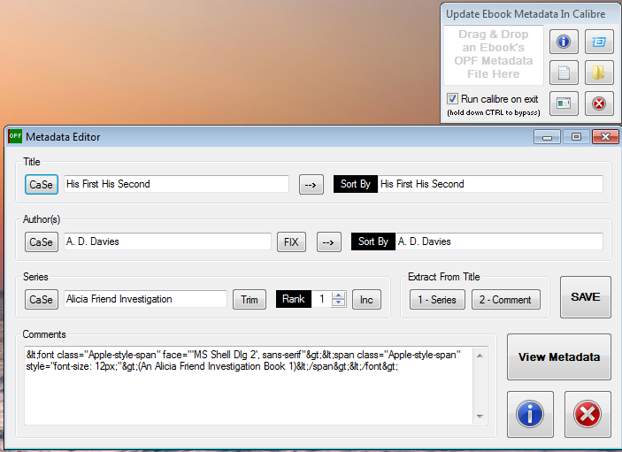 In this instance, like my story in first post indicates, I am just doing some pretty quick basic things, and avoiding having to go to too much trouble, as I do this most days, and the quicker the better, as it is a chore enough. And all is done for backup purposes really, or just for the day I decide to change to a device that needs a specific file type. As my database in calibre grows bigger and bigger, I like to keep it well managed, and part of that is how titles and names etc look. I like to know at a glance that it is a title, extraneous text removed. |