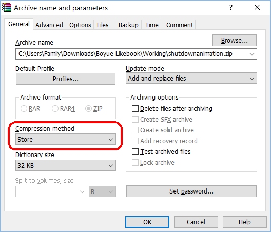 This ereader belongs to John Smith If found please call John @ 212-555-1212 I then replaced the image in the zip file. It was critical that the image in the zip file is simply stored in the file and not compressed. I could not find a way to simply replace the file without compression using Windows or 7 zip so I grabbed a trial version of Winrar from this page. Then I replaced the Open_screen_1.png image with my modified image. When adding this new image I made sure to change Compression Method from Normal to Store, see attached. Using Store does not alter the file at all, it simply places the file in the zip. I then copied the file to the SD Card. Before copying the file to /system/media/ directory I went to the directory and renamed the existing shutdownanimation.zip file to shutdownanimation.zip.bak. Now I copied the new shutdownanimation.zip file to the original /system/media/ directory. Next time I shut the ereader down, my new image displayed as I had hoped. Last edited by DoctorOhh; 01-31-2018 at 08:59 AM. |