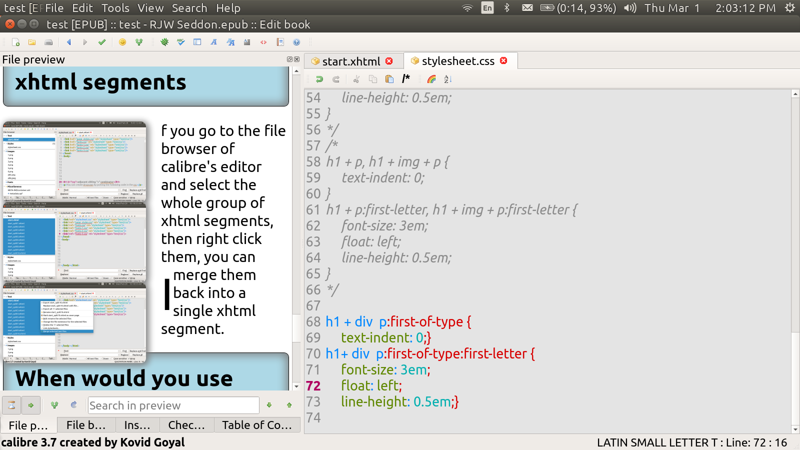 I am enclosing an epub. The epub is best looked at in the calibre editor. I also have a matching video, but cannot upload to this site, as it is MKV. Instead I uploaded the matching video to youtube. The name is "dropcapvideo" https://youtu.be/8jh8RzaF72M Best regards, Pop