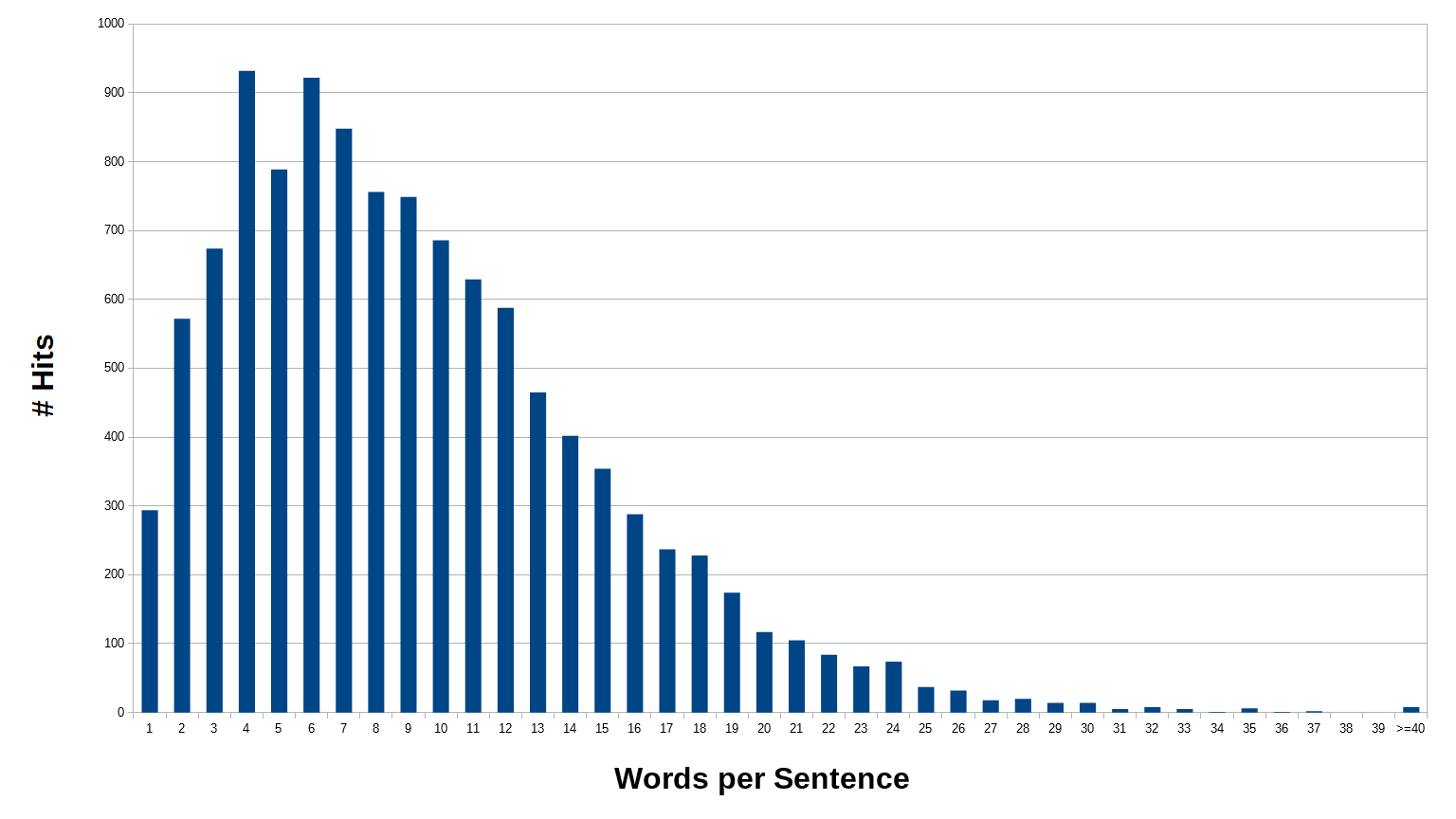 and point out any other interesting stats that appear. Words/Characters per Sentence For example, I could compare Words per Sentence across a series: Brandon Sanderson's epic fantasy series, Stormlight Archive books (Books #1-3): Another epic fantasy, Robert Jordan's Wheel of Time (Books #1-3): George R.R. Martin's A Dance with Dragons (Book #5 of A Song of Ice and Fire): Or a popular science fiction book, Andy Weir's The Martian: Top 50 Words to Start a Sentence Or take the first 3 books in the Wheel of Time: Code: