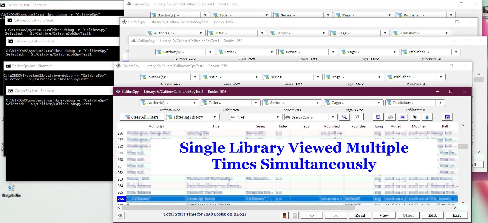 Currently I run multiple version 2 calibre servers to achieve a similar result. It works but having and running multiple versions of calibre is something I'd rather not do, and I really don't like browser based applications. But, I need to have multiple calibre libraries open simultaneously with the Library Management (LM) program (calibre.exe), except the one that it has open. I appreciate there'd be an issue if the LM switched to another library - maybe that could be disabled if CalibreSpy was active. Is that something you'd consider? And if so, would it be feasible to display additional columns. And a word of thanks for providing yet another innovative and useful addition to calibre. BR |