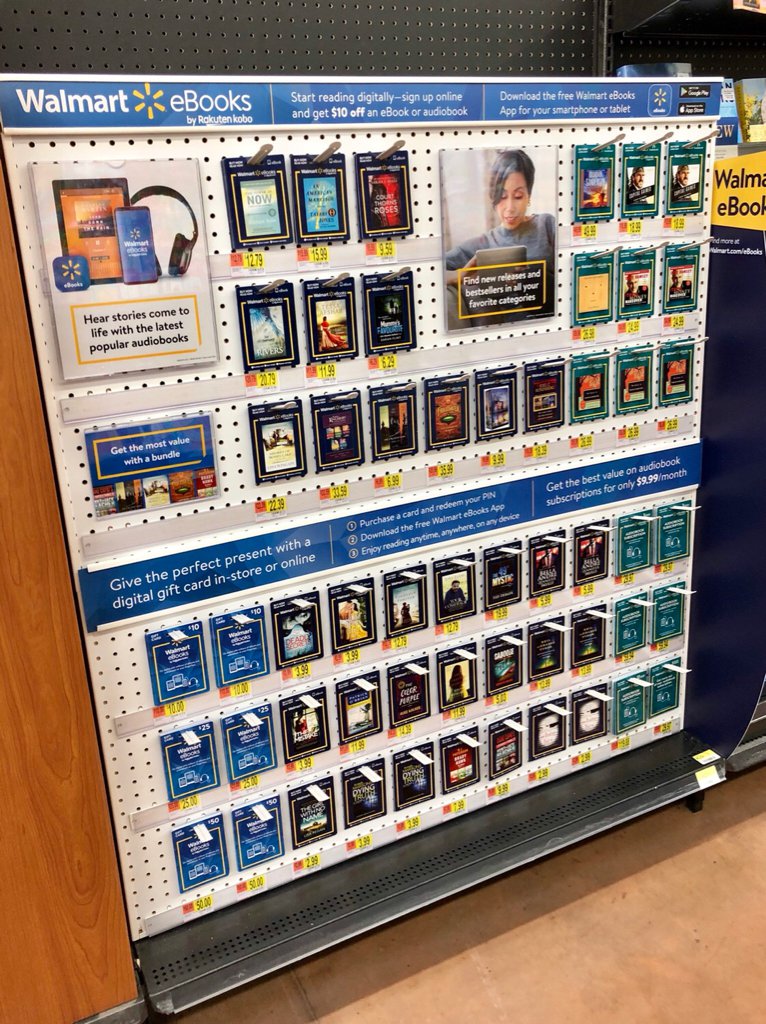 They took a section out of their anemic book area to make room for the display. No ereaders. Just books, audiobooks, subs, and gift cards as others have reported seeing. I have to admit that I’m disappointed, but there are other Walmarts to check out before I give up. I think it’s silly that they have limited cards in stock. They could potentially sell out of a book that’s available forever digitally. Has anybody purchased an ebook at a Walmart yet? I’m not a fan of the selection. I guess my tastes are too obscure. I am curious why they have so few books. There’s clearly room for more if they didn’t use multiple slots for one book. However, I hope they do well so that they expand the area and offerings. Sent from my iPhone, proving definitively that I’m all thumbs. http://DouglasCootey.com Last edited by issybird; 09-01-2018 at 10:18 AM. Reason: Oversize images thumbnailed. |