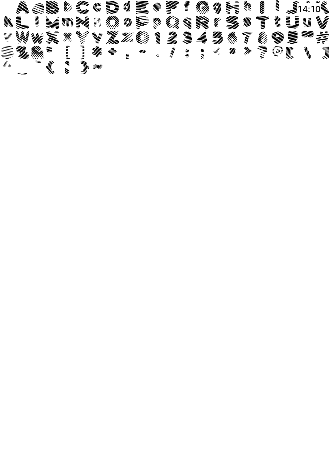 [root@kindle root]# cd /mnt/us/tcc [root@kindle tcc]# tcc -Iinclude -Iinclude/freetype2/freetype -Iinclude/freetype2 -Llinkfonts/lib/autohint -lfreetype -o testpantspatrol testpantspatrol.c [root@kindle tcc]# ./testpantspatrol Glyph 0 name .notdef 3 40 25 19 40 Glyph 1 name .null 0 0 0 0 0 Glyph 2 name nonmarkingretur 0 0 18 0 0 Glyph 3 name space 0 0 18 0 0 Glyph 4 name exclam 1 34 14 10 35 Glyph 5 name quotedbl 2 36 23 19 19 Glyph 6 name dollar 1 36 28 25 32 Glyph 7 name percent -2 35 36 36 39 Glyph 8 name ampersand 0 34 37 35 36 Glyph 9 name quotesingle 4 35 16 10 19 Glyph 10 name parenleft 0 35 18 15 43 Glyph 11 name parenright 4 35 21 16 43 Glyph 12 name asterisk 3 36 35 30 32 Glyph 13 name plus 2 28 25 22 22 Glyph 14 name comma 4 9 16 10 17 Glyph 15 name hyphen 2 22 21 17 10 Glyph 16 name period 2 8 15 11 10 Glyph 17 name slash 0 36 22 21 40 Glyph 18 name zero 1 34 32 29 37 Glyph 19 name one 1 34 19 15 35 Glyph 20 name two 2 34 30 27 35 Glyph 21 name three 2 34 31 26 36 Glyph 22 name four 0 36 34 31 36 Glyph 23 name five 2 34 31 28 36 Glyph 24 name six 1 34 30 28 35 Glyph 25 name seven 0 34 27 32 35 Glyph 26 name eight 1 34 31 28 36 Glyph 27 name nine 0 34 30 28 35 Glyph 28 name colon 2 23 15 10 25 Glyph 29 name semicolon 3 23 15 10 32 Glyph 30 name less 1 30 27 25 25 Glyph 31 name equal 3 27 26 20 19 Glyph 32 name greater 1 30 25 25 27 Glyph 33 name question 1 34 27 25 36 Glyph 34 name at 0 0 34 0 0 Glyph 35 name A 1 34 35 33 36 Glyph 36 name B 1 34 33 30 35 Glyph 37 name C 0 34 33 32 36 Glyph 38 name D 1 34 36 33 36 Glyph 39 name E 1 34 27 26 37 Glyph 40 name F 1 34 27 25 35 Glyph 41 name G 1 34 37 35 36 Glyph 42 name H 1 34 35 32 35 Glyph 43 name I 2 33 14 10 35 Glyph 44 name J 1 33 26 23 35 Glyph 45 name K 1 34 33 30 35 Glyph 46 name L 1 34 28 27 35 Glyph 47 name M 1 37 40 36 39 Glyph 48 name N 1 36 36 31 38 Glyph 49 name O 1 34 38 35 35 Glyph 50 name P 1 34 32 30 33 Glyph 51 name Q 1 34 38 35 38 Glyph 52 name R 1 34 33 30 35 Glyph 53 name S 1 34 31 29 36 Glyph 54 name T 0 34 32 31 36 Glyph 55 name U 1 34 34 32 35 Glyph 56 name V 1 35 35 32 36 Glyph 57 name W 1 35 57 54 36 Glyph 58 name X 1 34 31 28 36 Glyph 59 name Y 1 34 34 31 35 Glyph 60 name Z -3 34 32 33 35 Glyph 61 name bracketleft 1 35 20 17 43 Glyph 62 name backslash 0 35 24 23 42 Glyph 63 name bracketright 1 35 21 17 44 Glyph 64 name asciicircum 1 39 31 26 25 Glyph 65 name underscore 1 0 36 34 10 Glyph 66 name grave 1 38 17 12 13 Glyph 67 name a 1 27 30 27 29 Glyph 68 name b 1 33 28 25 34 Glyph 69 name c 0 28 26 25 29 Glyph 70 name d 0 33 28 25 34 Glyph 71 name e 1 28 31 28 29 Glyph 72 name f 1 34 21 20 34 Glyph 73 name g 3 27 31 25 38 Glyph 74 name h 1 34 28 24 35 Glyph 75 name i 1 35 14 10 35 Glyph 76 name j -1 35 17 15 46 Glyph 77 name k 0 34 27 26 35 Glyph 78 name l 1 34 14 10 35 Glyph 79 name m 2 28 48 44 29 Glyph 80 name n 2 28 31 27 29 Glyph 81 name o 1 28 32 29 30 Glyph 82 name p 1 28 28 25 37 Glyph 83 name q 1 28 29 25 37 Glyph 84 name r 2 27 23 20 29 Glyph 85 name s 1 28 28 25 30 Glyph 86 name t 1 33 22 20 34 Glyph 87 name u 1 27 31 26 29 Glyph 88 name v 0 26 29 26 28 Glyph 89 name w 0 27 46 44 29 Glyph 90 name x 3 27 29 23 29 Glyph 91 name y 0 27 32 29 38 Glyph 92 name z -3 27 30 33 29 Glyph 93 name braceleft 0 35 27 26 43 Glyph 94 name bar 0 0 18 0 0 Glyph 95 name braceright 0 35 28 27 42 Glyph 96 name asciitilde 2 23 36 32 15 Glyph 97 name .notdef 0 0 52 0 0 Glyph 98 name .notdef 0 0 52 0 0 Glyph 99 name .notdef 0 0 52 0 0 Glyph 100 name .notdef 0 0 52 0 0 Glyph 101 name .notdef 0 0 52 0 0 Glyph 102 name .notdef 0 0 52 0 0 Glyph 103 name .notdef 0 0 52 0 0 Glyph 104 name .notdef 0 0 52 0 0 Glyph 105 name dotlessi 0 0 18 0 0 Glyph 106 name circumflex 0 0 18 0 0 Glyph 107 name caron 0 0 18 0 0 Glyph 108 name macron 0 0 18 0 0 Glyph 109 name breve 0 0 18 0 0 Glyph 110 name dotaccent 0 0 18 0 0 Glyph 111 name ring 0 0 18 0 0 Glyph 112 name ogonek 0 0 18 0 0 Glyph 113 name tilde 0 0 18 0 0 Glyph 114 name hungarumlaut 0 0 18 0 0 Glyph 115 name quoteleft 4 35 16 10 19 Glyph 116 name quoteright 4 35 16 10 19 Glyph 117 name quotesinglbase 0 0 18 0 0 Glyph 118 name quotereversed 4 35 16 10 19 Glyph 119 name quotedblleft 2 36 23 19 19 Glyph 120 name quotedblright 2 36 23 19 19 Glyph 121 name ellipsis 2 8 37 31 10 [root@kindle tcc]# ![]() I now see that you are working on an fbink API to draw an image from memoryCould that image be the FreeType Code: