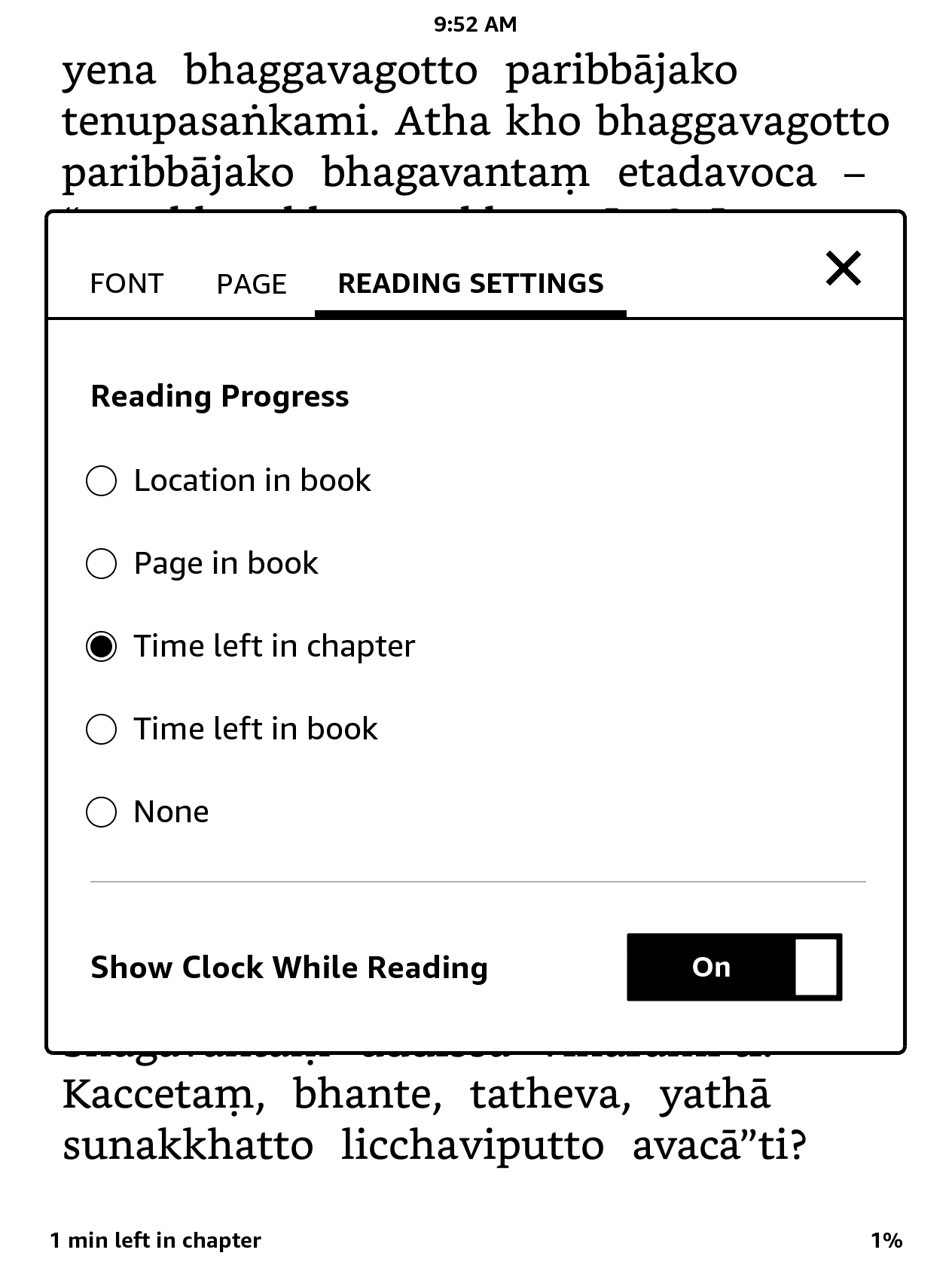I found it on my first-gen Oasis. While reading a book, tap the top of the screen, then Aa, then Reading Settings, and turn on Show Clock While Reading. Thanks, all, this saves me turning my wrist and moving my eyes to find out what time it is! Actually, with nighttime insomnia, this could be a nice feature to increase your terror at how much sleep you are losing... |