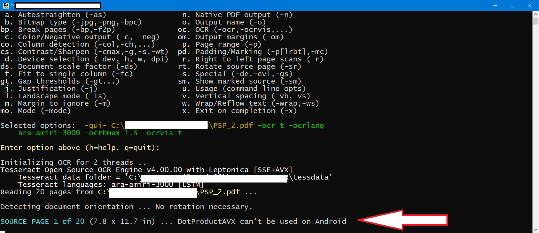K2pdfopt v2.50 is released. The major enhancement in this release is compiling in the Tesseract v4.0.0 library. Most other third-party libraries have also been updated to recent releases. See details at the web site.