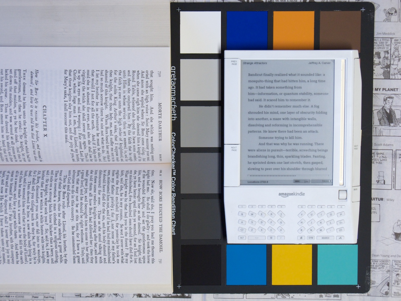 lilac_jive, if you look closely at cerement's photo you will see the display in relation to not only the color balancing chart but also a book with actual white pages. The eink even on the Kindle is not close to any shade of white. My experience with gray scale displays comes from the old CRT days and gray scale always included white as part of the scale. Even the original macs has white as part of the scale. in face the displays were caller paper white. Combine that understanding with the use of the word white when describing the technology you should be able to see why one is let down when viewing the display in real life. Light gray I certainly could live with. But the current color is several shades darker than light gray. Last edited by snipenekkid; 03-06-2009 at 10:44 PM. |