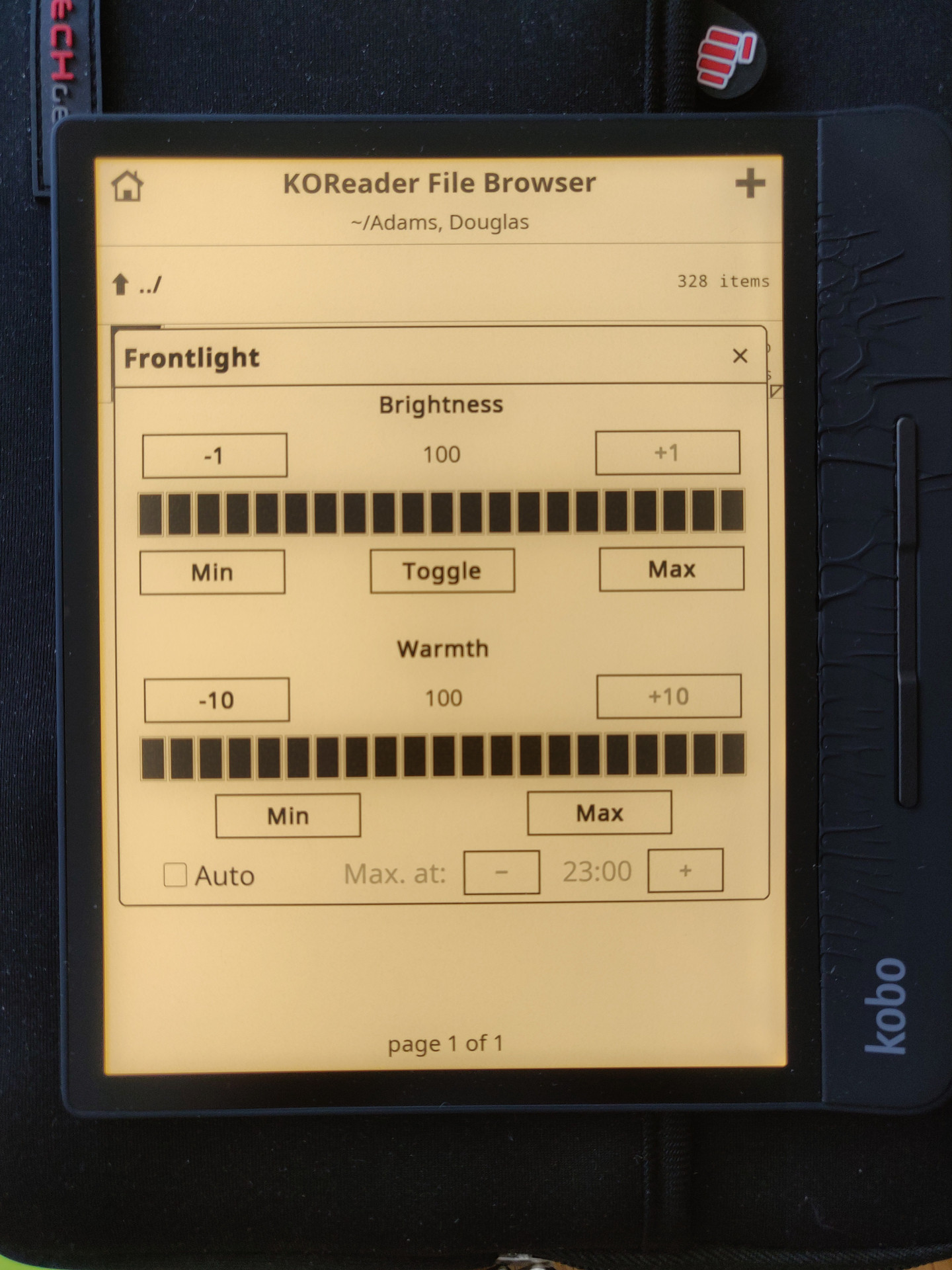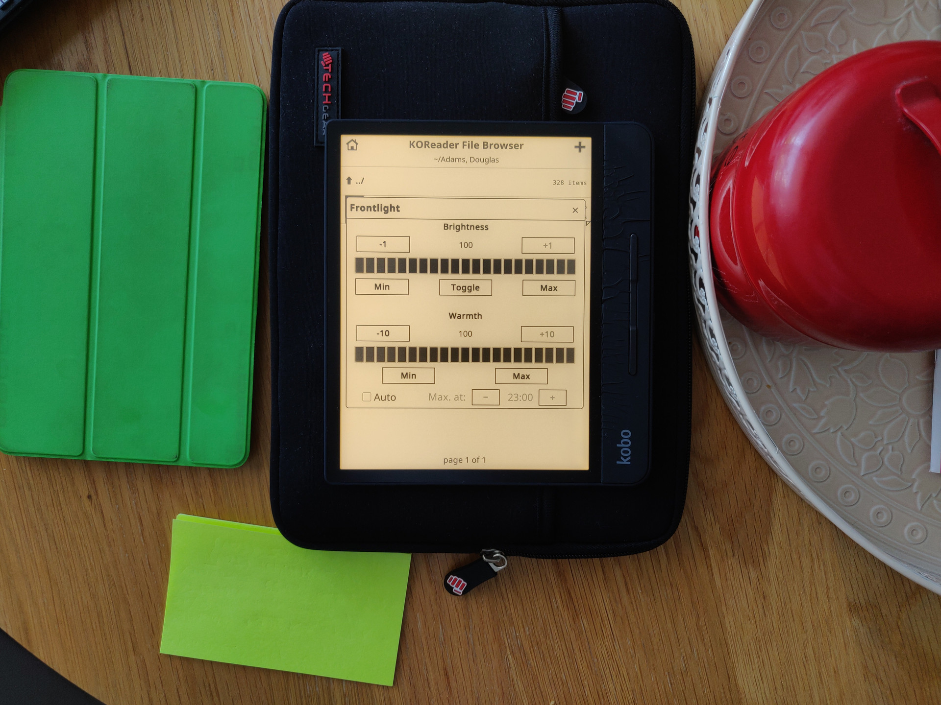 I'm trying to decide between the Forma and the Aura One. I didn't expect to like it so much, but the Forma has really grown on me. The screen is really nice, the ergonomics are pretty nice, etc. My only problem is that the frontlight is such a weird color. The Aura can get to a reddish-orange color that I really enjoy. But the Forma's frontlight, with the "Natural Light" settings turned all the way up, is this weird almost greenish color. Is there any way to change it? The Forma seems like a really great device, but the color settings are a total dealbreaker for me. |