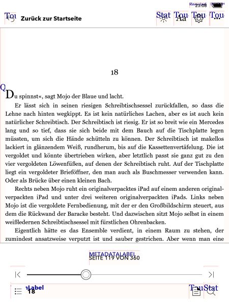 I just updated my Kobo Aura One and after the reboot the user interface looks weird. As you can see on the screenshots, the labels and the menu is totally messed up. firmware is not patched and i did the update as usual (just copied the content of the firmware zip to the .kobo directory) i tried to fall back to the previous version (4.15.12920) but it looks the same. Does anyone of you experience the same or a similar problem? Has anyone an idea what went wrong and how i can fix this? Thanks in advance, your help is higly appreciated! Ron EDIT: found it!... obviously i enable the "Show widget info" setting in the dev options. unticked the checkbox, rebooted and everything is back to normal Sorry for bothering!!! Last edited by DaRon; 09-25-2019 at 06:18 PM. Reason: added solution |