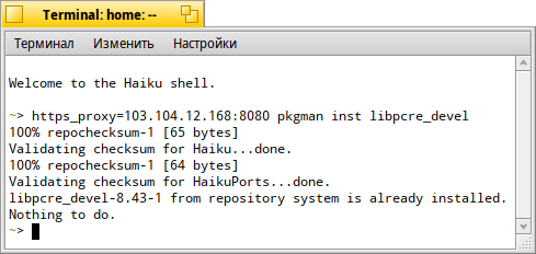 --enable-pcre16 enable 16 bit character support --enable-pcre32 enable 32 bit character support Note it includes neither of these flags. This alarms me. Please report a bug to the HaikuPorts project. |
