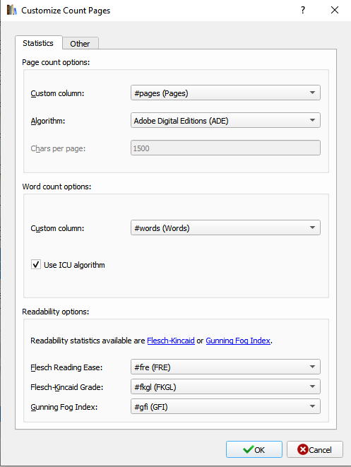It was faster this time - 26m06s today vs 26m36s yesterday ![]() I'm using the current Calibre Windows 64-bit build. I update everytime Calibre reminds me there's a new version. Are there any Calibre debug options that might give a more verbose log file? EDIT: I'm using the ADE page count algorithm if that's relevant. EDIT2: Attached screenshot of my Count Pages configuration Last edited by snarkophilus; 12-07-2019 at 08:02 PM. |