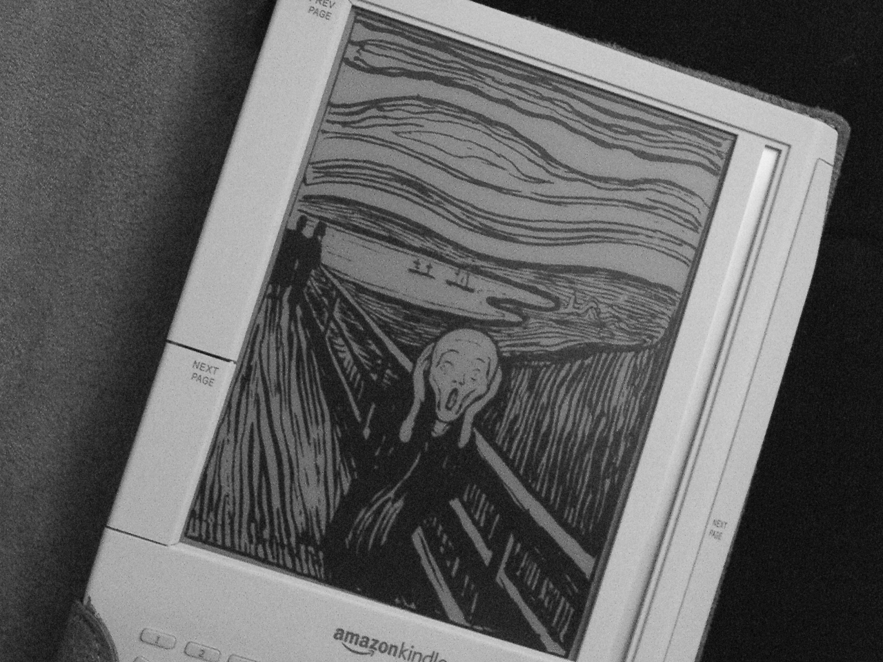 I found the screensaver instructions here and decided to use Mr. Munch's lithograph of "The Scream", courtesy Wikipedia. I haven't seen it around here so I thought I would share. I dig it and hope someone else does too. The pic of the Kindle is a high iso shot and appears grainy here. Not so in real life. I resized "The Scream" jpg using my minimal skills, and it fits nicely on the Kindle 1. Last edited by galavanter; 03-06-2009 at 02:16 PM. |