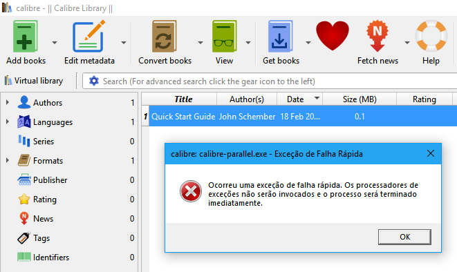 The problem is back so now I went for a full test and I think this must be a Calibre issue. Why? It can be replicated with specific Calibre portable versions. Lets go for details (including debug logs)! 1- When it happens? Always after closing the Calibre reader. There is an alert window for "calibre-parallel.exe" Picture attached (My windows system its in Portuguese but the image reads like the initial user posted: Quote: