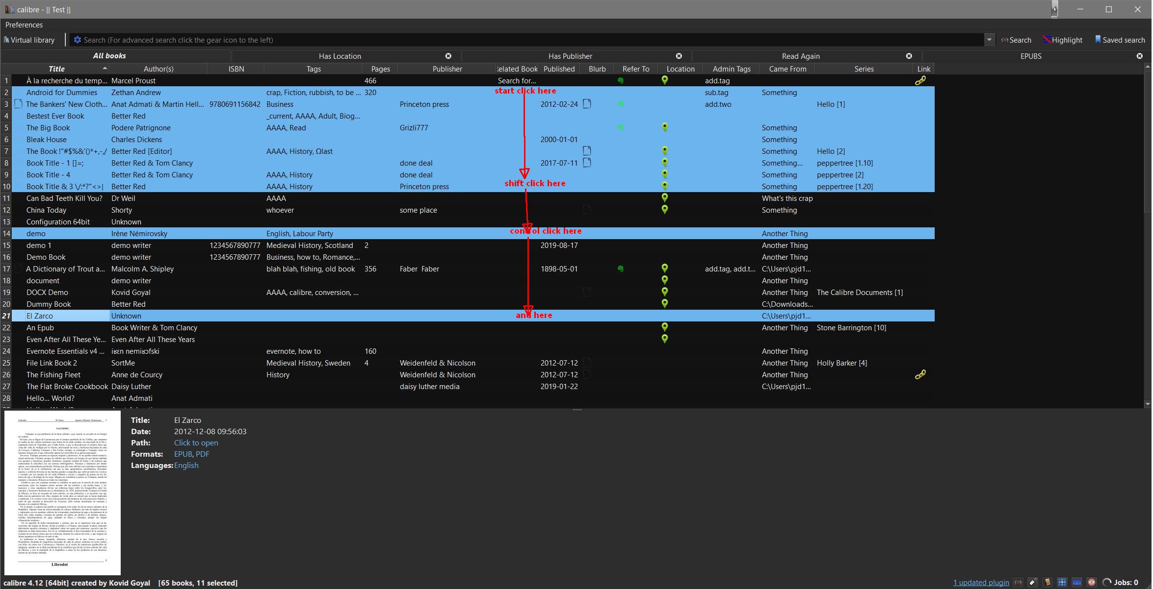 Since I updated Calibre to 4.12.0 a few days ago, I can no longer select multiple epubs for bulk actions, using 'Shift + Left Mouse click. This is a really bad thing and a really big deal. Yikes! And yes, every other program on my Windows 10 PC still works perfectly when using the 'Shift + Left Mouse click' to select multiple lists of text or files. And yes I've tried both Shift keys, and two different mice... no change. It's a singularly Calibre specific issue. Help. Frizzell Last edited by Frizzell; 03-15-2020 at 03:09 PM. Reason: missing info |