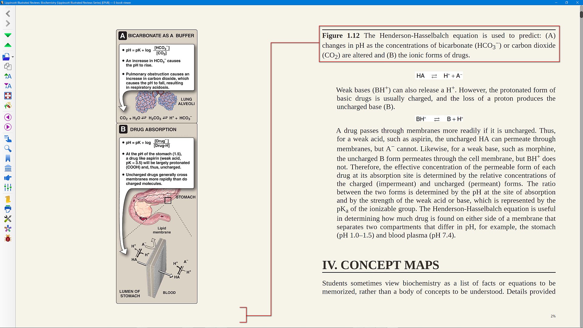 <div class="Figure" id="Ferrier-ch001-fig012"> <p class="fig-img"><img src="Image00018.jpg" alt="Ferrier7e-ch001-image012"/></p> <p class="FigTitle"><span class="fignum">Figure*1.12</span> The Henderson-Hasselbalch equation is used to predict: (A) changes in pH as the concentrations of bicarbonate (HCO<sub>3</sub><sup>−</sup>) or carbon dioxide (CO<sub>2</sub>) are altered and (B) the ionic forms of drugs.</p> </div> Code: