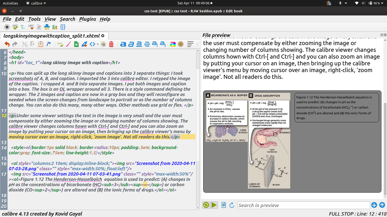 Sorry, I thought you were looking for advice on how to EDIT the book so that long skinny images would stay with caption. If you are just looking for a way to view the book better without editing it, I suggest using the multicolumn Ctrl-[ and Ctrl-] feature of the calibre reader. Images will be followed by caption in next column automatically in a correct alignment. You can zoom the image in calibre's viewer. Best regards, Pop |