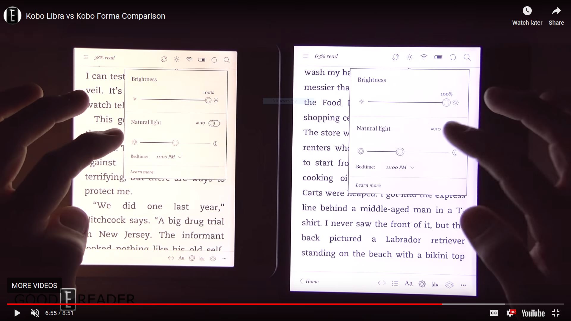 I stand by this photo below...it is perfectly representative of my experience when comparing side by side both my Forma and Libra with the kindles. https://i.imgur.com/iMfpVBx.png Last edited by bookyboy; 04-15-2020 at 07:46 PM. |