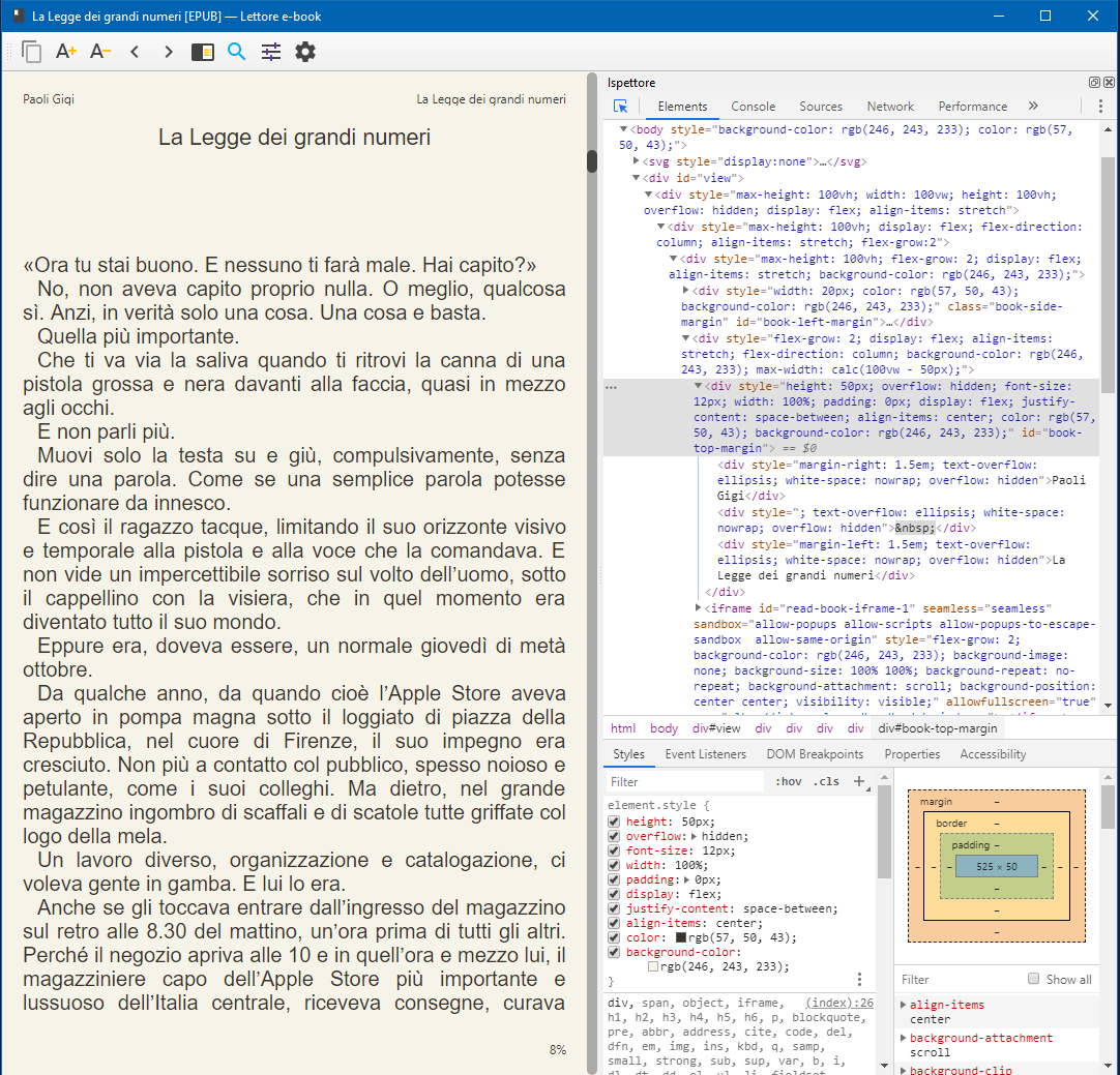 When using Calibre e-book viewer with epub books I see that the heading showing author and title uses a font that do not show properly the descenders of some letters (lowercase g, j, p, q and y) under the baseline of the font.