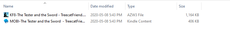 Next question is what version of calibre and what operating system are you using? Have you tried generating a ebook file with only one format in it? Though that means you might want to use Kindle Previewer. KindleGen is a bit long in the tooth—the last update I'm aware of was in 2014. You could try using calibre to convert your input file for kindlegen to mobi making sure the MOBI file type in the MOBI output is set to old or convert it to azw3 instead of using KindleGen. BTW, here a sample from the end of logfile from kindlegen in verbose mode converting a fanfic set in David Weber's Honorverse. I didn't even remember that I had the executable left in backup. Code: