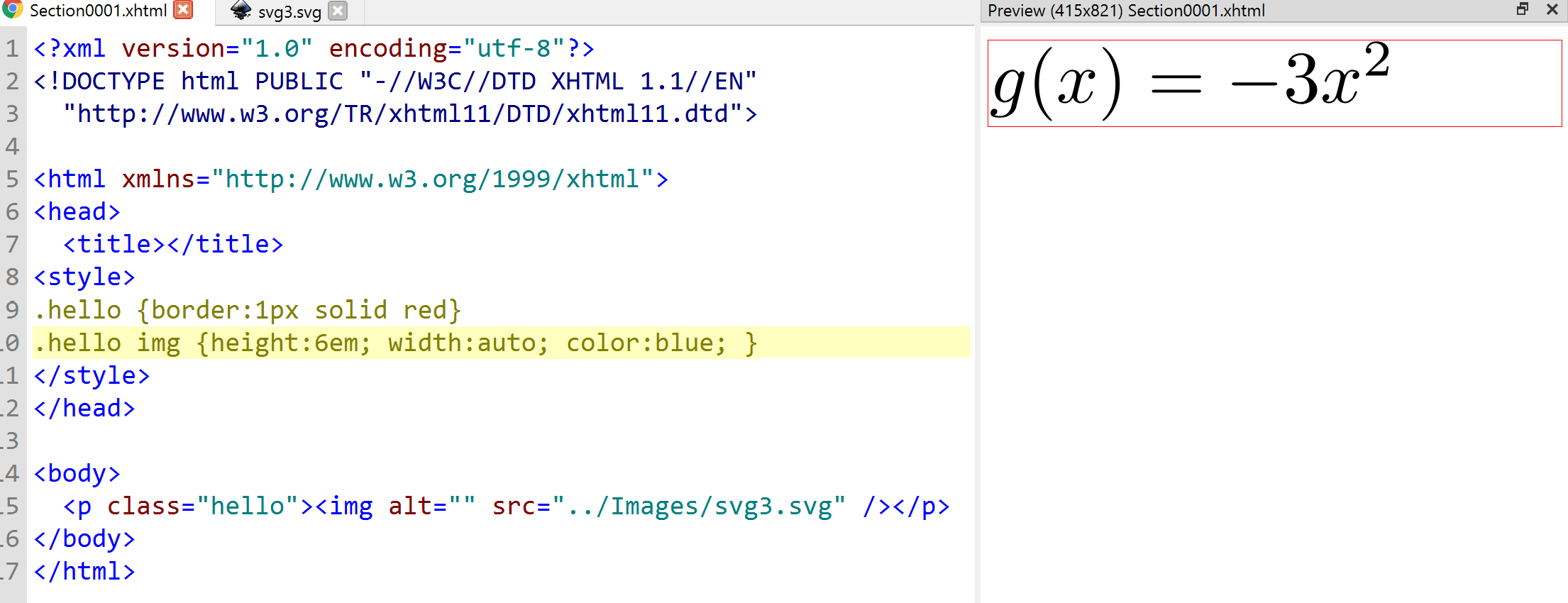 it is readable on my large PC monitor but on anything smaller- tablet, Kobo... I struggle to make out the equations. each is coded like so: <p class="formula_block"><img alt="formula" class="fs38" src="../Images/svgimg0379.svg"/></p> there are 485 .svg definitions in the epub , within images. but each appears in sigil as a long bunch of numbers so it does not look easy to mess with those there are 60 similar fs... classes, they all have different heights and have width auto. see examples below. I am wondering if there is any simple way to regex in a scaling factor which will blow up every .svg equation image by a set percent ? can i do that be changing only the formula block p class , or will anything there be overridden by the img class fs... code extracts: .formula_block { display: block; margin-bottom: 1em; margin-left: 0; margin-right: 0; margin-top: 1em; text-align: center; text-indent: 0 } .fs { display: inline; height: 1.25125em; vertical-align: -0.296888em; width: auto } .fs1 { display: inline; height: 1.02375em; vertical-align: 0; width: auto } .fs2 { display: inline; height: 1.1375em; vertical-align: -0.076213em; width: auto |
