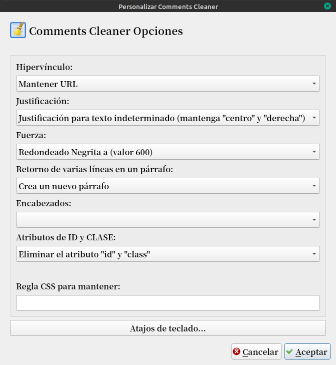 Strategy change: All CSS rules are removed. Only a handful basic rules as keep. - Added a option to specify additional CSS rules to keep. - Saving parameters in a JSON (common to all libraries). Your settings will be reset! - Added an option to remove Multiple Line Return <br> and create a new paragraph instead. |