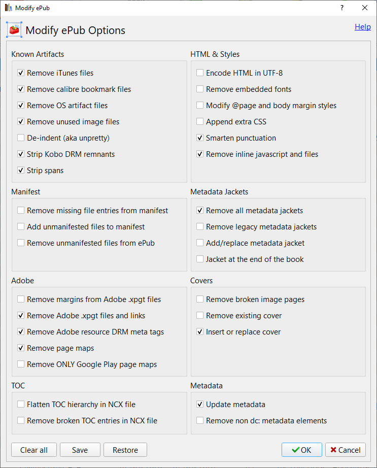 2) Question for anyone, but what does Calibre's Embed Metadata button do? Compared to Modify ePub. |