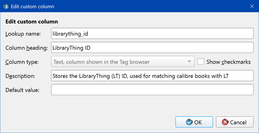 What I've been doing to link my LT record to my Calibre record is to insert the LT Book ID in the IDs field in my Calibre record as ltid: and to add the calibre ID into my LT book entry as an 'other call number' as Calibre ##### (using leading zeros). This is done as part of my manual logging process as I acquire new ebooks and load them into Calibre. It's not perfect, because where I split omnibuses, the IDs get reused, and when I merge short stories, there's multiple IDs. It's also manual, but I can process a record in a couple of minutes, so it's not too onerous. It would be nice to be able to automate the matching and insertion of IDs. |