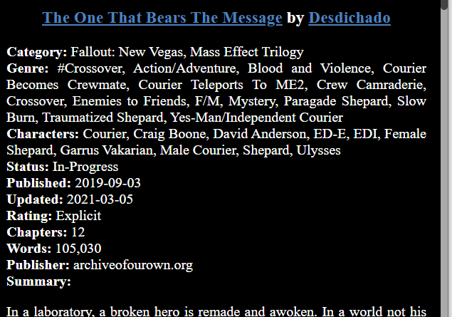 titlepage_entries: series,category,genre,characters,status,datePublished,dateUpdated,rating,numChapters,numWords,site,description